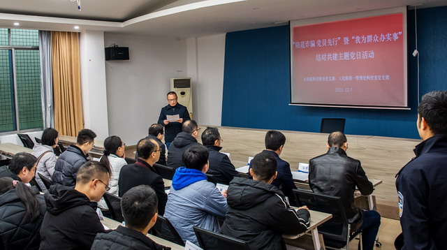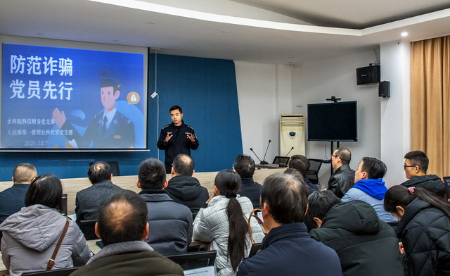 为进一步深入开展党史学习教育,扎实推进"我为群众办实事"实践活动,以科技引领推进“灌区榜样”建设,12月7日,水科院科信财务党支部、人民渠第一管理处科技室党支部开展了“防范诈骗 党员先行”暨“我为群众办实事”主题党日活动和推进“灌区榜样”建设专题研讨会。水科院党委书记、院长刘双美,人民渠第一管理处党委书记、处长周宗剑,副处长吴平勇等参加了活动。 全体党员到人民渠第一管理处所属东林社区开展主题党日活动。在社区会议室,民警汪科为大家作了题为“防范诈骗 党员先行”的宣传讲座,他针对当前电信网络诈骗典型案例和高发态势,详细讲解了电信网络诈骗的常见类型、诈骗手法,指导下载安装“国家反诈中心APP”,并就“国家反诈中心APP”和“蓉城反诈卫士小程序”使用进行了说明,宣传讲座让大家加深了对电信网络诈骗的认识,增强了防骗意识和反诈能力。为帮助所属社区困难群众解决实际问题,在东林社区书记彭勇的陪同下,刘双美和周宗剑一行共同慰问了社区困难群众,详细了解他们目前的身体情况、生活状况及存在困难,叮嘱他们保重身体,鼓励他们保持乐观的心态积极面对生活,并为他们送去慰问品。此次走访慰问活动,以实际行动让社区困难群众充分感受到了党组织的关怀与温暖,也是“我为群众办实事”的一种具体表现。 主题党日活动后,在机关六楼会议室召开了以科技引领推进“灌区榜样”建设专题研讨会。大家以“凝聚党建结对合力、共推灌区榜样建设”为题,对三年打造灌区榜样进行了充分讨论,碰撞出火花,凝聚了共识。 刘双美充分肯定了两支部结对共建的重要意义,强调:一是要深刻认识建设“国际知名、国内一流”灌区榜样的重要意义。共同推进科技创新,凝心聚力创建“灌区榜样”典型示范,打造智慧灌区新标杆,在推动建设“灌区榜样”中干在实处、走在前列。二是要以党建引领为抓手,以水利需求为导向,互学互鉴、互帮互助,着力解决“高质量的工程建设、科技创新、信息化建设”等方面面临的难题。三是要紧紧围绕“灌区榜样”建设总体目标,加强对已建信息化平台无缝对接、数据信息互联互通等方面的科研合作,以科技创新助推“灌区榜样”建设。 周宗剑对水科院刘双美一行表示热烈欢迎,对水科院长期以来对我处水利信息化方面的帮助和支持表示感谢。他强调:一是强化党建引领,助推“灌区榜样”建设。要始终把推进“灌区榜样”建设作为把厅党组“3226”工作思路在我处坚决贯彻落实到位的重要举措。二是对标三年行动方案,以实用为原则,从基础入手,在以科技创新推进“灌区榜样”建设上要找到“点子”、思考“路子”、想出“法子”,着力提升我处的水治理体系和治理能力现代化水平。三是深化支部科研合作,开展重点课题研究。双方要围绕供水保障、防灾减灾等强化合作力度,将共建共享落地落实,为“灌区榜样”建设提供强有力科技支撑。 通过本次结对共建活动,两个支部将充分利用好支部结对共建这个平台,奋勇拼搏,开拓进取,不断增强党支部的创造力、凝聚力和战斗力,认真贯彻落实厅党组“3226”工作思路,锤炼“敢想敢干敢成”的精神,增强“善想善干善成”的本领,追求卓越、做到极致,为加快推进都江堰“国际知名、国内一流”灌区榜样建设,开启都江堰灌区水利事业发展新征程贡献力量!