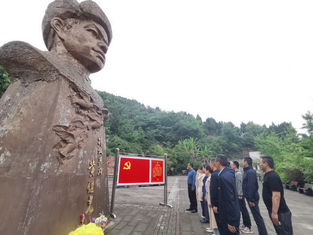 在黄继光故居,全体党员参观了黄继光旧居,瞻仰了烈士雕像。在黄继光雕像前,党委书记汤传波带领全体党员干部同志重温了入党誓词。在黄继光纪念馆,全体党员通过观看图片、影像、实物、场景等形式全面了解了黄继光的英雄事迹及辉煌战斗历程。