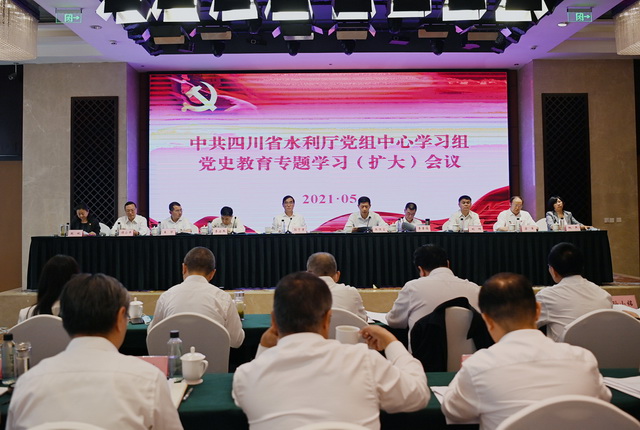 为深入推进全省水利系统党史学习教育活动,承前启后、继往开来,切实把水利厅党组前期加强党史理论学习教育,深入调查研究和广泛听取各方意见建议的成果转化为助推四川水利高质量发展的不懈动力。5月13日,水利厅党组中心学习组党史教育专题学习(扩大)会在成都召开。会议在认真听取党史教育专家刘伟教授的党史教育辅导课后,深入分析研判新时期新阶段四川水利改革发展面临的新形势新机遇和新挑战,提出了新时代实现四川水利高质量发展的“3226”总体工作思路。水利厅党组书记、厅长郭亨孝主持大会并作主题报告和总结讲话。厅党组成员、副厅长张强言解读《四川省“十四五”水安全保障规划报告(汇报稿)》。李启兵、李勇蔺、王华、刘辉、谭小平、梁军、赵斌、权燕等厅党组中心学习组成员及在职厅级干部出席会议。