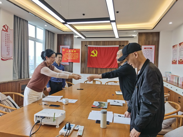 支部书记杨琳将写满政治生日寄语的贺卡赠送当天过政治生日的党员马勇。马勇分享自己入党以来的感受和体会,回顾自己成长历程和入党以来的表现并表示:将牢记入党誓词,提高党性修养,增强党性意识,锤炼党性意志,坚定理想信念,感恩党的关怀,不忘初心,牢记使命,做一名优秀的共产党员。