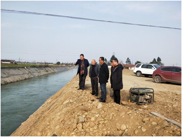 2019年1月21日,党委书记汤传波、总工程师李国贤在孝泉站站长钱波陪同下,深入人民渠干渠四期工程沿线,检查了工程建设管理情况。