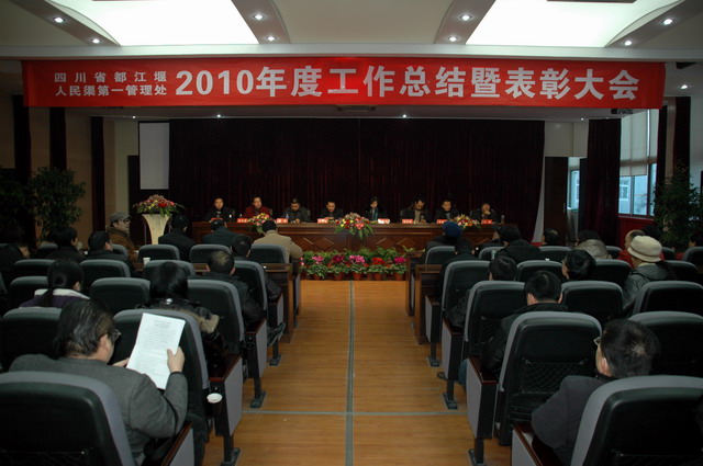 总结表彰大会由党委书记何荣智主持。会上,处长王世容首先代表处党委、处行政,向全处职工及其家属,致以美好的节日祝福!王世容指出,刚刚过去的2010年,是人民渠一处稳定发展的一年,在厅党组的正确领导和关心下,处领导班子团结和谐,带领全处职工扎实工作,经受住了灌区用水矛盾突出、特大洪水灾害、灾后重建时间紧任务重三大考验,全处干部职工奋力拼博,攻坚克难,全力推进水利事业新发展,供水输水、工程建设、灾后重建、水利经济发展、精神文明建设等方面都取得了显著成绩,较好地完成了全年的各项目标任务。新的一年,全处上下一定要认清形势、抢抓机遇,加快工程建设,继续抓好灌区安全供水,狠抓经济发展,不断谱写我处水利事业新篇章。