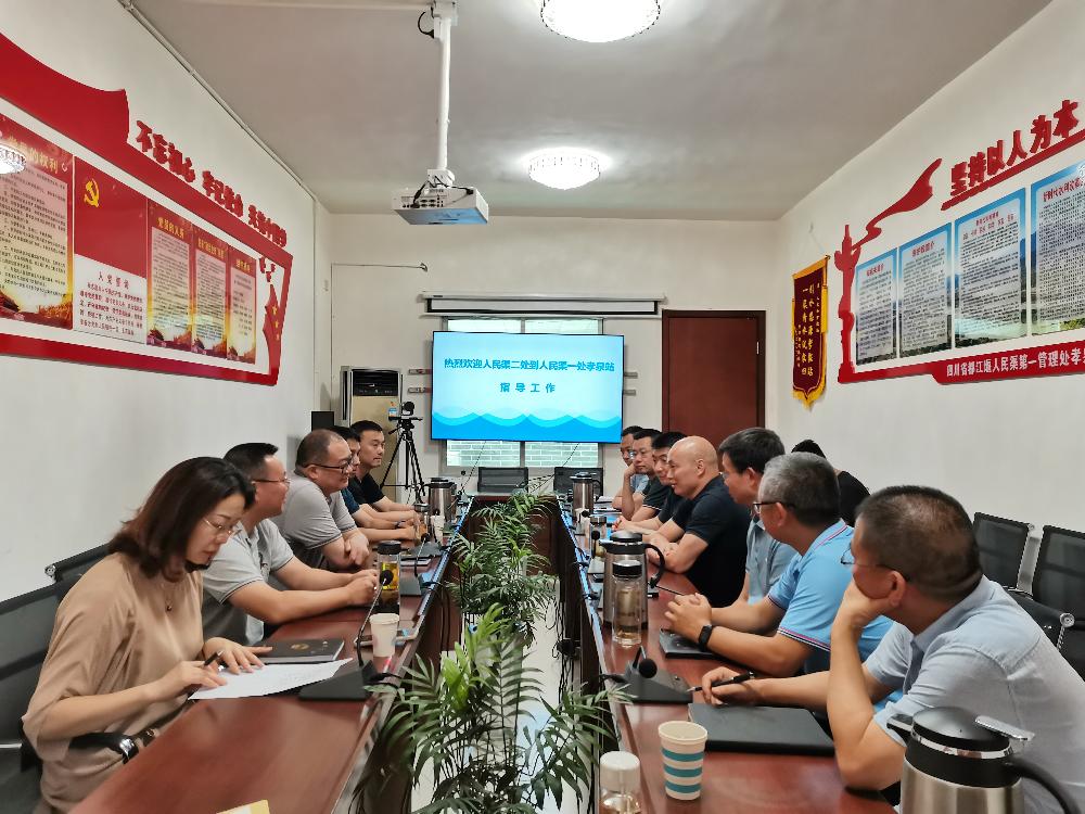 2022年6月21日下午,人民渠第二管理处党委书记、处长李国贤一行到人民渠第一管理处孝泉水利管理站交流指导工作。
