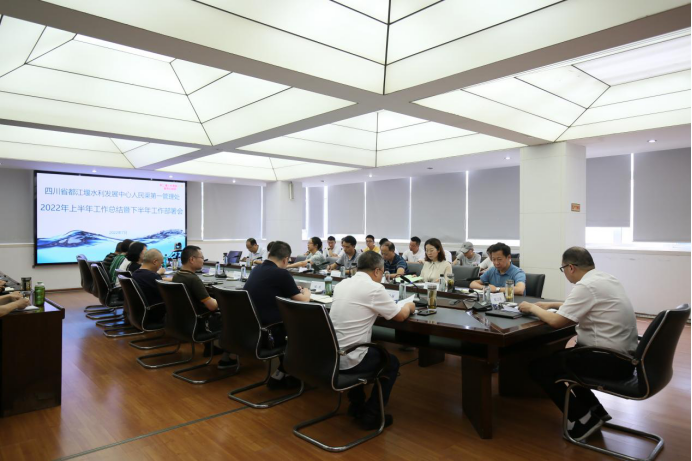 为进一步贯彻落实四川水利高质量发展“3226”工作思路,加快推进都江堰灌区三年行动纲要落地落实,2022年7月7日上午,人民渠第一管理处召开2022年上半年工作总结暨下半年工作部署会,回顾上半年工作、总结经验、查找不足,安排部署2022年下半年重点工作。处党委书记、处长周宗剑出席会议并讲话。
