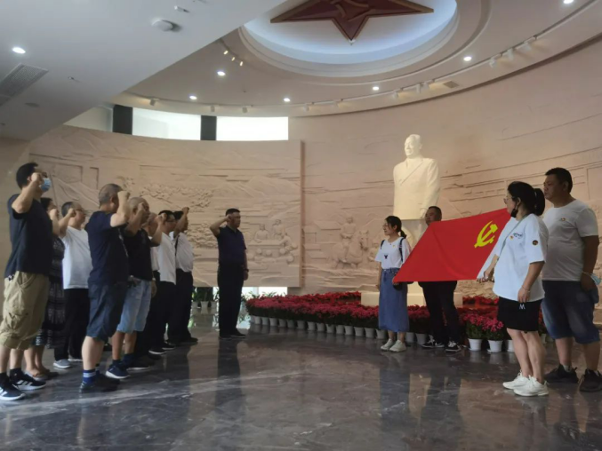 在陈毅元帅雕像前,党员重温入党誓词,坚定入党宣誓的承诺与决心。纪念馆内追忆陈毅元帅从赴法留学、立志报国到浴血奋战、治国救国的生平事迹和革命生涯。真切感受他对党和国家事业的忠诚、坚守和坚贞革命气节。