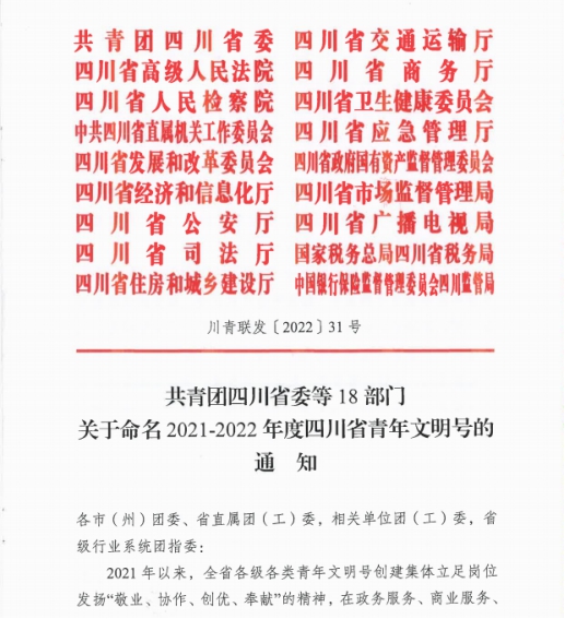 命名2021-2022年度四川省青年文明号的通知(1)