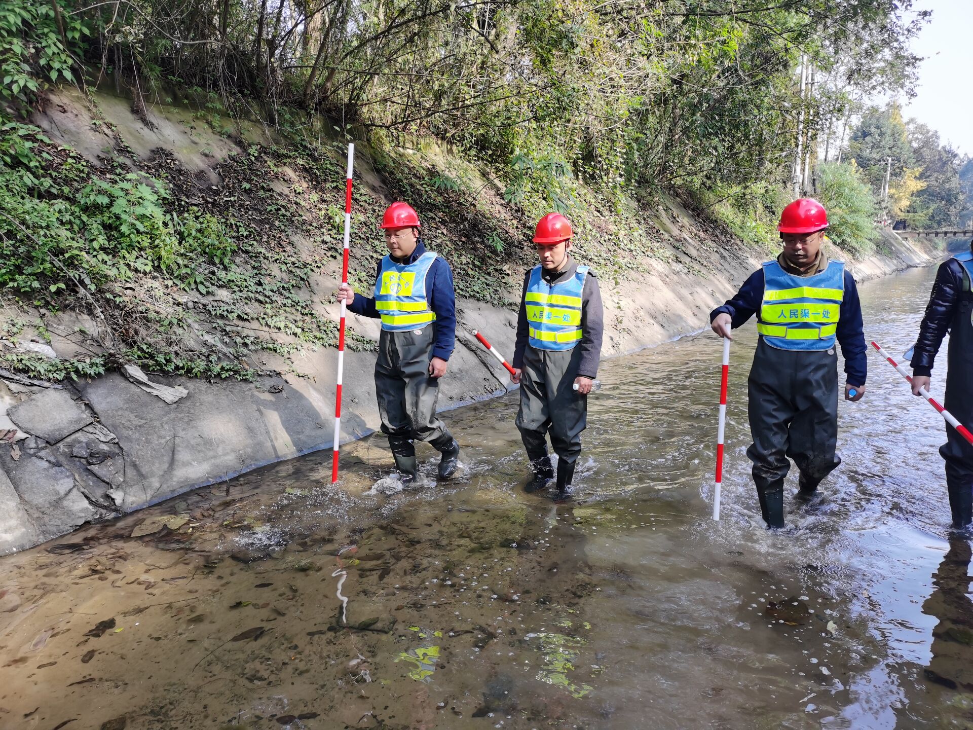 正因红岩渠的特殊性,邱志军和红岩养护段的段员们需要比别人加倍认真与仔细,付出更多辛劳与汗水。看似简单的红岩渠,要管好护好,除了摸爬滚打的经验积累必不可少,还要对红岩渠的每一个分水洞、每一寸土地了如指掌。邱志军和段员们几十年如一日用脚步丈量红岩渠的沟沟岔岔、山山水水,早已摸透了红岩渠的“脾性”,练就了一身“听音识患”的绝技。往往从红岩渠边经过,只需通过水声,即可鉴别出渠道是否存在管涌和渗漏。当然“听”只是第一步,更重要的是“看”,当险情初步发现后,只有下到渠道实地查验,才能确认险情程度,及时进行应急处置。“不能打马虎眼,该跑的地方都要跑到,该做的事情都要做到,要不然有些险情发现不了,那就糟了。”邱志军说道。