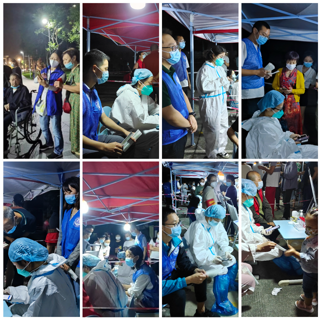 从黄昏到夜幕,志愿者们奋勇前行,发扬连续奋战、不怕吃苦的优良作风,切实扛起共同防疫的重任,推进核酸检测有序、高效、安全开展,为广大群众筑起了一道道“安全屏障”,累计服务近万人次,展现了党员干部、青年志愿者勇于担当、敢于作为的良好精神风貌。