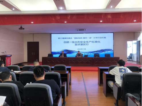 2022年11月1日,都江堰灌区“国际知名 国内一流”三年行动方案创建一级水利安全生产标准化宣讲灌区行活动进入人民渠第一管理处,深入宣讲水利安全生产标准化建设难点、要点、做法等内容。