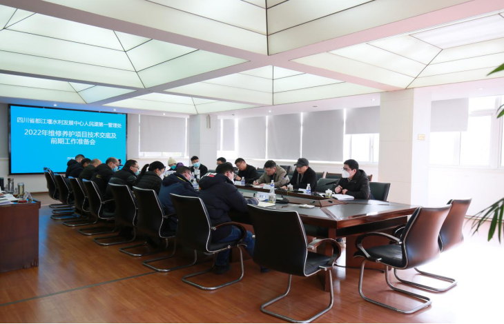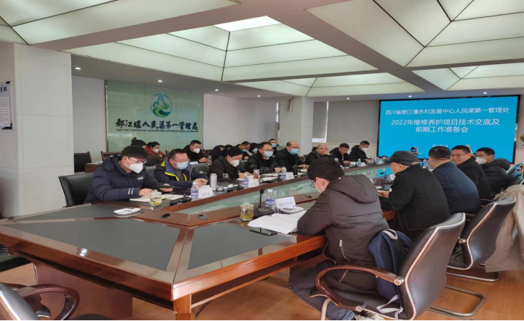 为进一步贯彻落实四川水利高质量发展“3226”工作思路,加快“国际知名、国内一流”灌区榜样建设,保障灌区社会经济高质量发展,维护水利工程良性运转与水资源可持续利用,按照都发中心统一安排,2023年1月5日,人民渠第一管理处2022年维修养护项目技术交底及冬修前期工作准备会在机关二楼会议室召开,都发中心运管处到会指导。人民渠第一管理处党委委员、副处长钱波出席会议,会议由运管科主持。