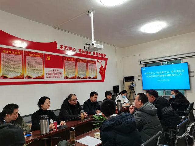 座谈会上,调研组听取了孝泉站关于工作中存在的问题、经济增长亮点以及2023年工作计划等工作情况汇报。详细了解了孝泉站人员结构,供水管理、工程管理、作风整顿、综经管理、党建工作、日常管理等工作开展情况。 周宗剑充分肯定了孝泉站2022年工作成绩,鼓励孝泉站干部职工立足本职,铆足干劲、开拓创新,2023年再创辉煌。要求加强干渠水质巡查,上下联动协调,保障春节期间供水安全。加强日常工程巡查,发现问题及时汇报,确保工程正常运行。加强协调沟通,共同做好2023年孝泉站特色站点打造。抓好支部标准化建设,做好职工队伍思想教育,锤炼“敢想敢干敢成”的精神,增强“善想善干善成”的本领,以更加饱满的工作热情、顽强的斗志为灌区“一体化”改革和“国际知名 国内一流”榜样建设贡献基层力量。 党群科、办公室、人事科、财资科负责人陪同调研。 (供稿:孝泉水利管理站)