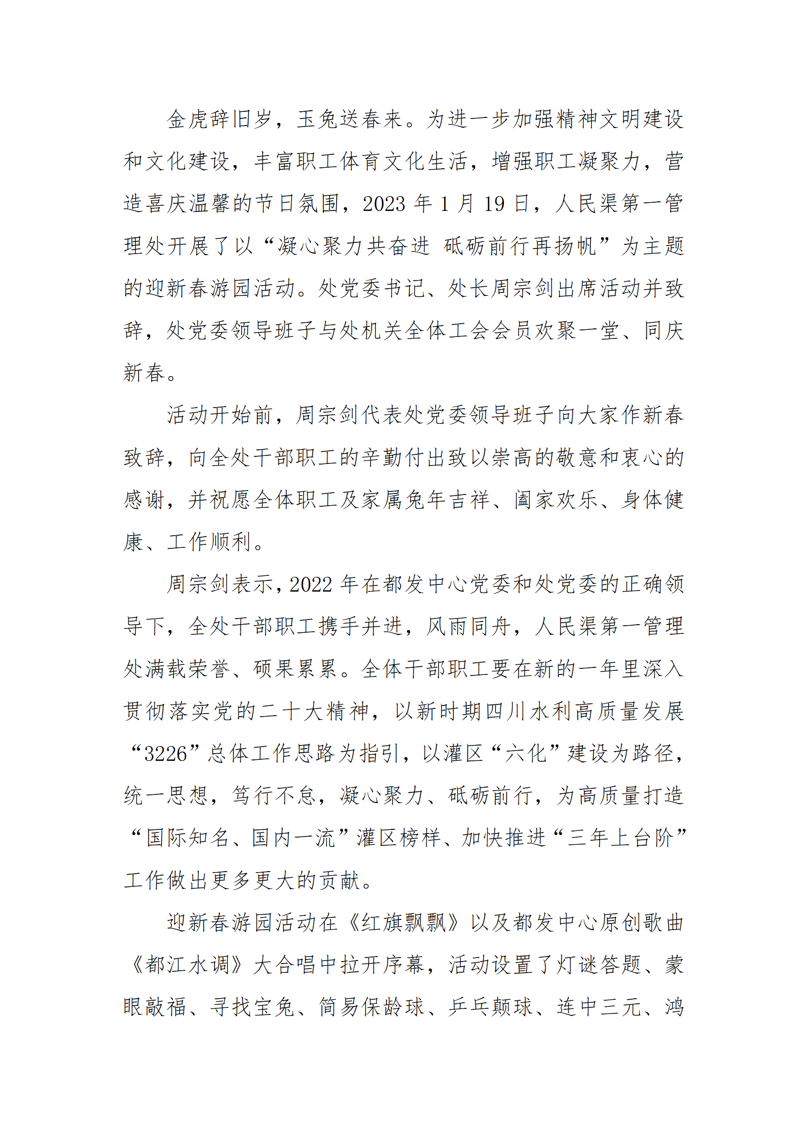 凝心聚力共奋进 砥砺前行再扬帆——人民渠第一管理处开展迎新春游园活动