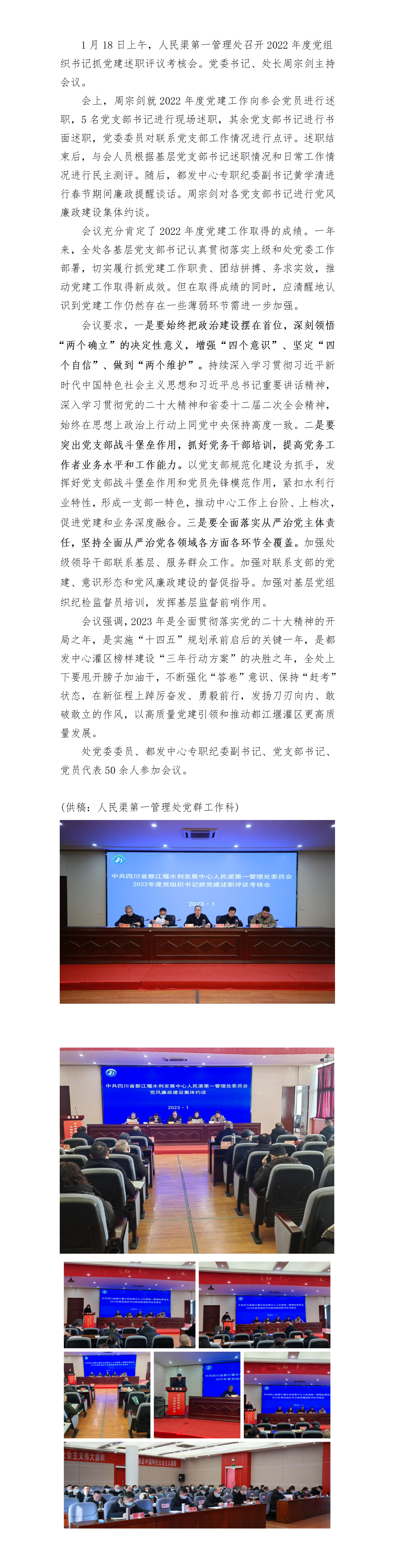 人民渠第一管理处召开2022年度党组织书记抓党建述职评议考核会