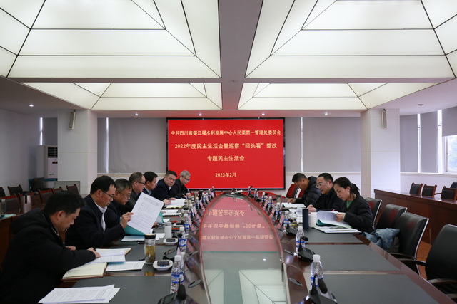 2月16日,人民渠第一管理处党委班子召开2022年度民主生活会暨巡察“回头看”整改专题民主生活会。人民渠第一管理处党委书记、处长周宗剑主持会议。都发中心党委委员、副主任陈万林率中心人事处、党群工作处相关负责人到会指导并讲话。