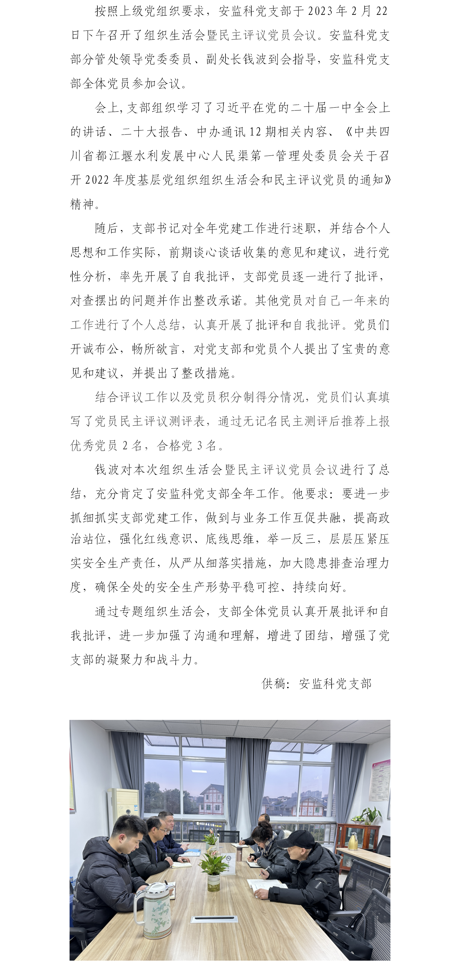 安监科党支部召开组织生活会暨民主评议党员会议