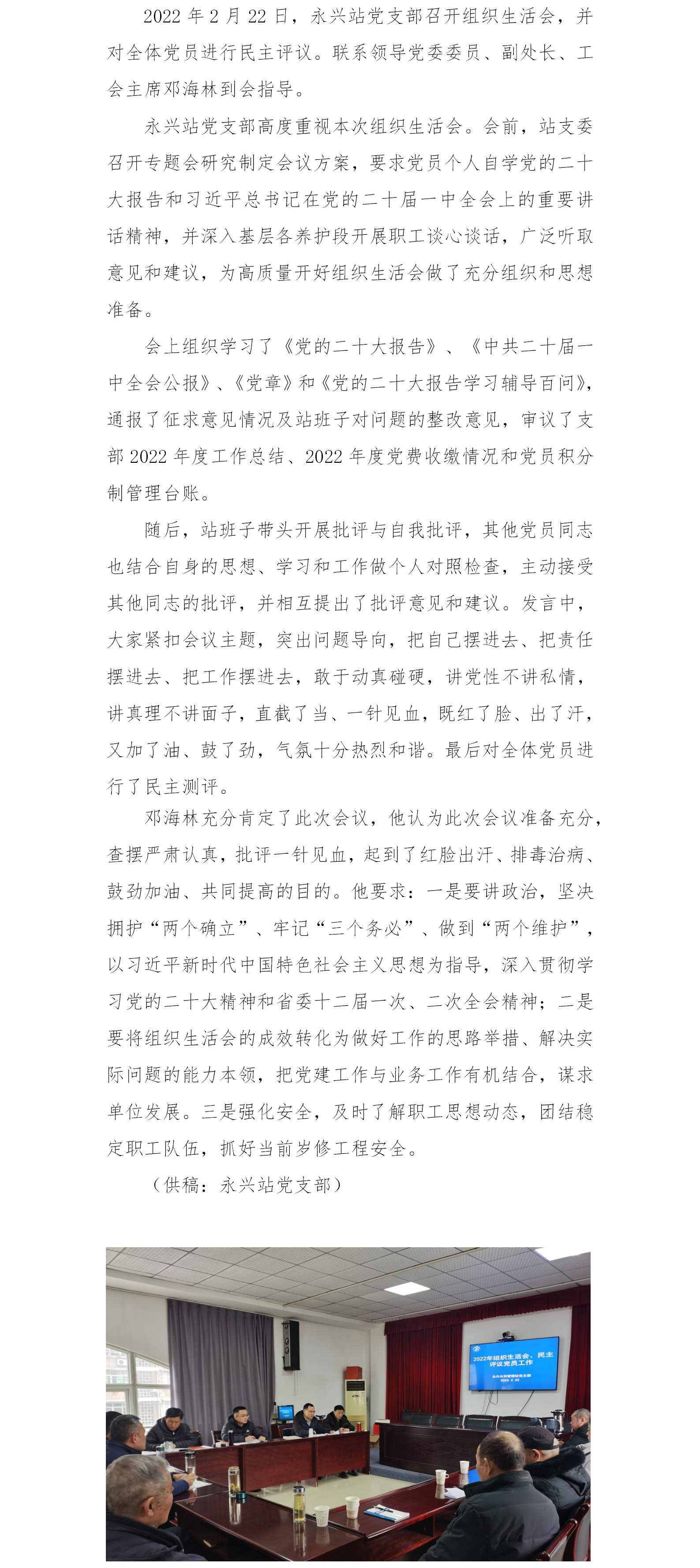 红脸出汗 排毒治病——永兴站党支部召开组织生活会暨民主评议党员会