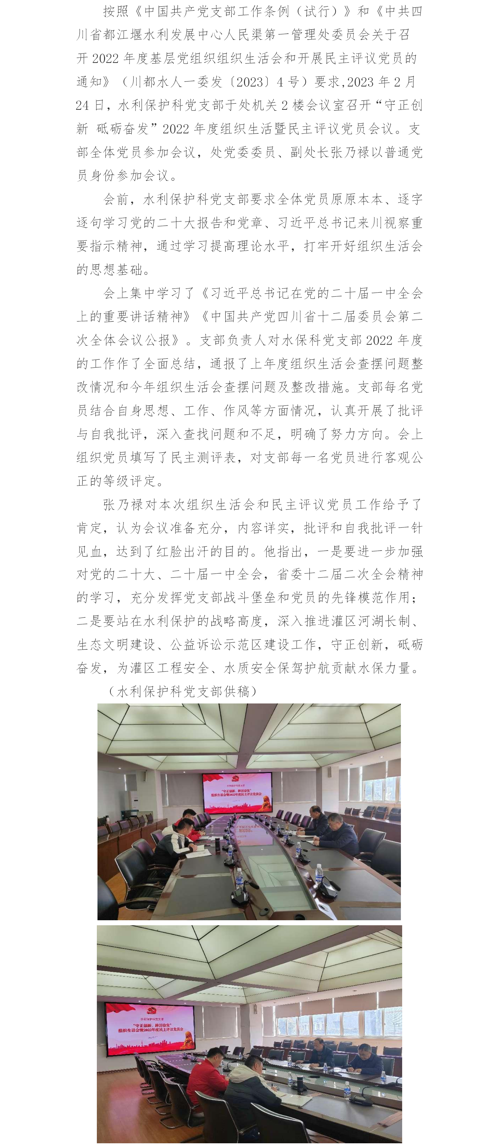 守正创新 砥砺奋发——水利保护科党支部召开2022度组织生活暨民主评议党员会