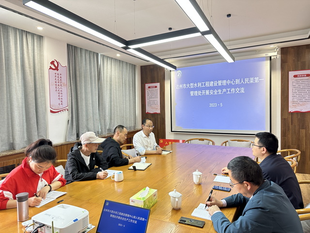 为加强安全生产工作经验交流,促进安全生产工作落实落细,5月11日,达州市大型水利工程建管中心质量安全科、工程技术科负责人一行到人民渠第一管理处开展水利安全生产工作交流学习,人民渠第一管理处安监科全体工作人员参加交流。