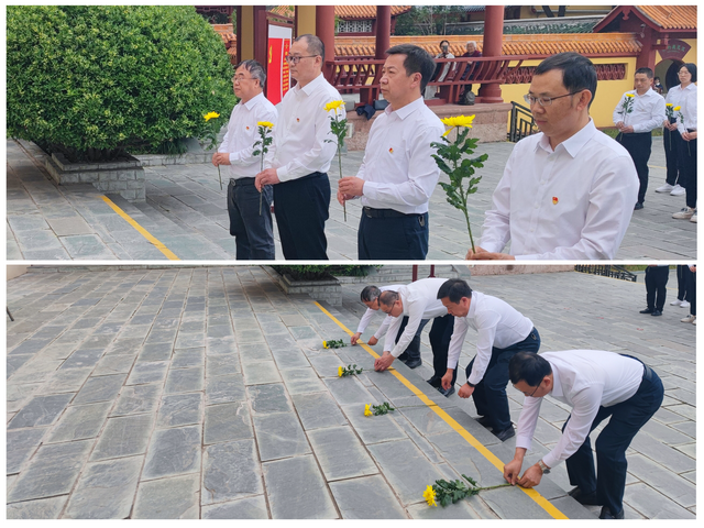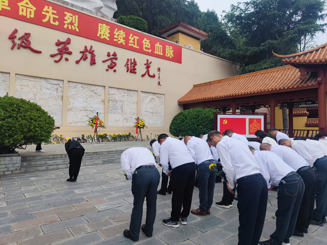 在黄继光纪念馆,雄壮高亢的旋律响起,全体处党委委员、党支部书记、主题教育领导小组办公室成员齐声高唱《中华人民共和国国歌》。黄继光雕塑下,党员干部整齐列队、庄严肃立、垂首默哀。周宗剑带领大家向革命烈士三鞠躬,表达深切缅怀和崇敬。