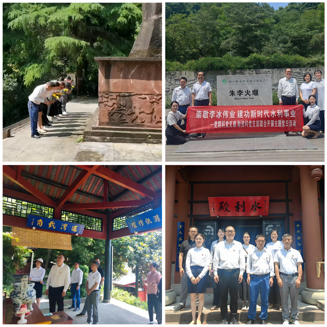 联合学思悟践,互融互促铸信仰。5月30日,党群科和财资科党支部将实践研学作为增强学习体验感和实效性的生动形式,组织党员干部沉浸式开展“崇敬李冰伟业、建功新时代水利事业”主题党日活动。联系处领导、党委书记、处长周宗剑参加活动并指导支部开展主题教育工作。