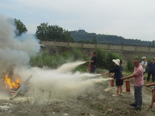 消防应急演练中,处安监科工作人员讲解了初期火灾扑灭知识和干粉灭火器的使用方法,参演人员即学即练,对模拟火灾进行灭火扑救练习。