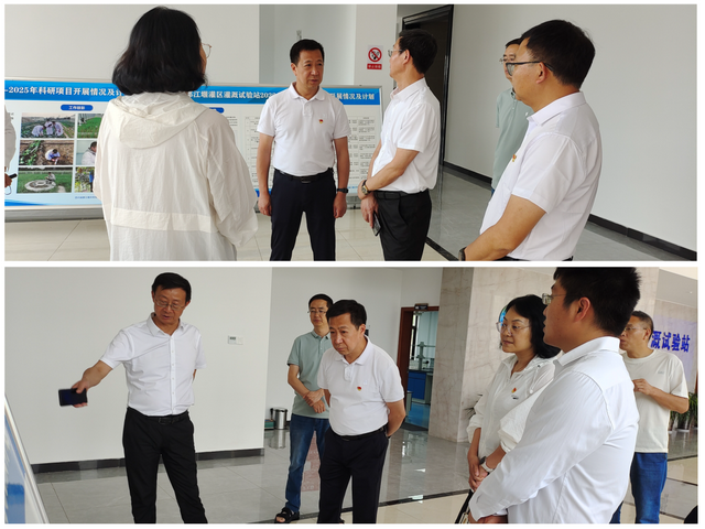在都江堰灌溉试验站,对试验设施区旱作物测坑蒸渗仪区、水稻测坑进行现场调研,了解当前农业节水试验、高效节水灌溉技术研发及科研合作等情况。