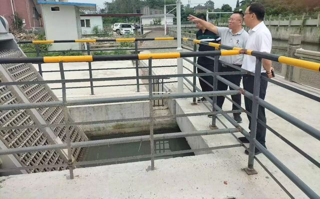 邓海林一行先后查看了石亭江养护段两处工业供水取水口、德阳市城市生活供水取水口,现场听取孝泉站主要负责人顾洪铭关于近期供水保障、防汛抗旱、农业灌溉等工作开展情况的汇报。