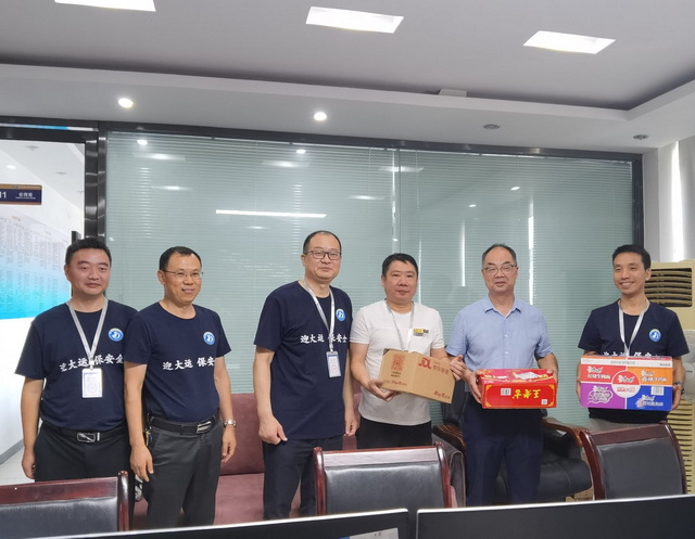 周宗剑一行先后前往供水调度中心、青白江水业有限公司、下马棚、西南石油大学体育场馆、南四支三斗、石油学院排洪河、南门河等点位,为值守人员送上防暑降温慰问品,对同志们表示亲切慰问。每到一处,周宗剑都详细询问蹲点值守人员工作开展情况,关心了解后勤保障情况,对全处24名蹲点值守人员和青年志愿者战高温、斗酷暑,恪尽职守、无私奉献的精神给予充分肯定,感谢大家的辛勤付出,叮嘱一线值守人员加强自身安全防护,注意高温防暑降温。