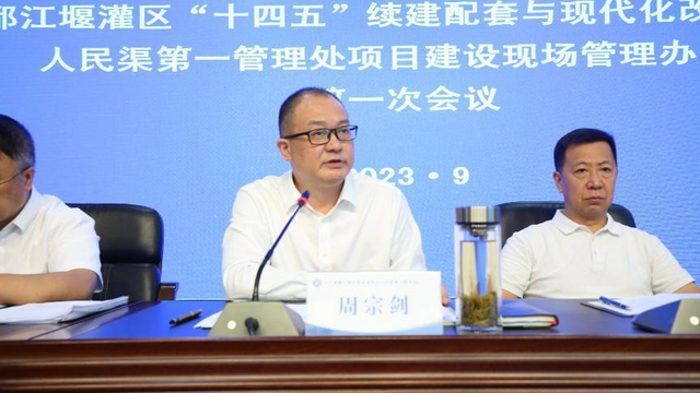 为深入贯彻落实习近平总书记来川视察重要指示精神,助力新时代更高水平“天府粮仓”建设,高质量推进都江堰灌区“十四五”续建配套与现代化改造工程人民渠第一管理处项目(以下简称“人民渠第一管理处项目”)前期各项工作,确保人民渠第一管理处项目顺利开工建设,9月22日,人民渠第一管理处组织召开人民渠第一管理处项目建设现场管理办公室第一次会议。党委书记、处长周宗剑出席会议并讲话,全体在家处领导、都发中心“十四五”建设办出席会议,党委副书记吴平勇主持会议。