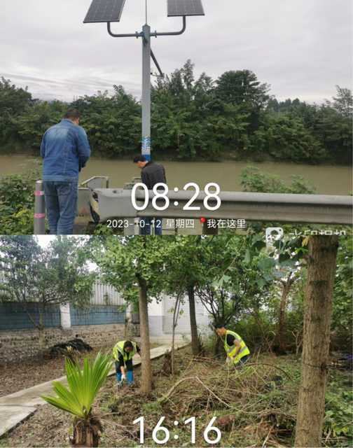邓通桥段按指令开关分水洞,进行园区杂草清理、林木修剪