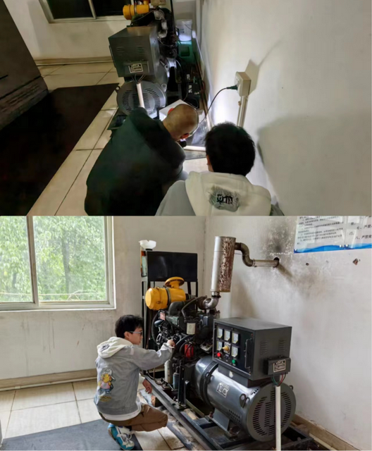 右浩段进行柴油发电机试机、蓄电池充电