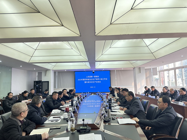 12月27日下午,在都江堰水利发展中心2023年安全生产领导小组工作会暨年度安全生产总结视频会议后,人民渠第一管理处庚即召开管理处2023年第四季度安全生产领导小组工作会暨年度安全生产总结会。会议由处党委书记、处长周宗剑主持。