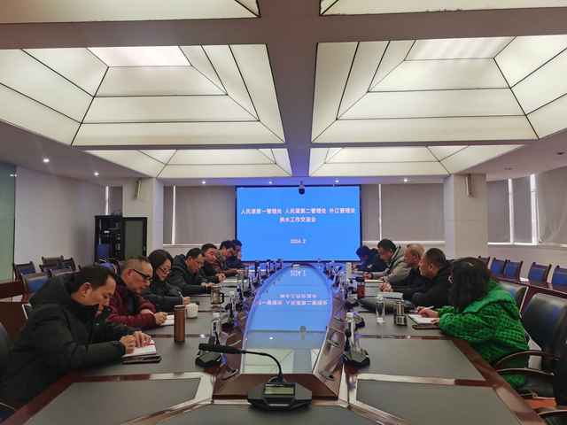 草长莺飞二月天,拂堤杨柳醉春烟。为全面落实都发中心《关于都江堰灌区2024年全面实行农业用水计量收费工作的通知》要求,加快推进灌区农业水价综合改革,促进灌区农业节水,规范农业灌溉用水管理,2月27日,外江管理处党委委员、副处长雷雨来,人民渠第二管理处供水科负责人刘广等一行到人民渠第一管理处开展供水工作交流,人民渠第一管理处党委委员、副处长、工会主席邓海林参加座谈交流。