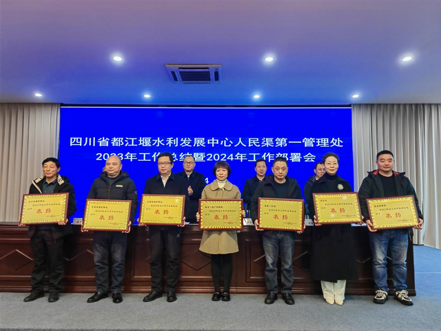 会上,相关处领导向获得四川省都江堰水利发展中心人民渠第一管理处表扬的集体颁发奖牌,就分管的工作作出具体安排和部署。