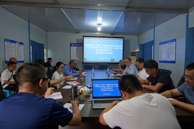 检查结束后,建设单位、设计单位、监理单位、施工单位以及彭州水利管理站等负责人在“十四五”项目部会议室召开了“十四五”续建配套与现代化改造工程在建项目安全度汛工作专题会。会议传达了《四川省水利厅转发水利部<关于加强在建水利工程安全度汛工作的指导意见>的通知》和《四川省水利厅办公室关于进一步做好省本级在建水利工程安全度汛工作的通知》。参建各方针对“十四五”续建配套与现代化改造项目的实际情况,围绕当前安全度汛准备工作情况和存在的问题以及下一步重点工作安排依次进行了发言。