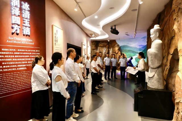7月19日,参观都发中心“古堰清风”廉洁文化馆。讲解员为党员们介绍馆内陈列的文物、图片和资料,为党员们讲述水利行业廉洁自律的故事,讲述典型腐败案例,全体党员重温入党誓词。