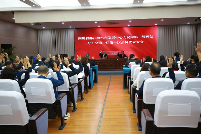 大会在雄壮的国歌声中正式开幕。会议宣读了都发中心工会《关于同意召开四川省都江堰水利发展中心人民渠第一管理处分工会第一届第一次会员代表大会的批复》,审议通过了《四川省都江堰水利发展中心人民渠第一管理处分工会第一届第一次会员代表大会选举办法》,工会委员会候选人名单,及监票人、计票人和唱票人名单,选举产生了人民渠第一管理处分工会第一届委员会。