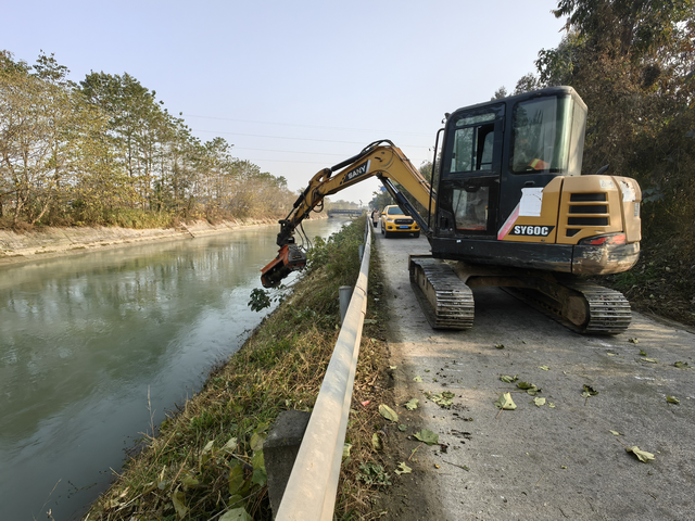 近日,在人民渠干渠什邡段,一台由挖机精心改装而成的除草机正在高效作业。原本杂乱无章的杂草灌木,随着机器轰鸣,被修剪得整整齐齐,呈现出井然有序的景象。现场一位协同作业的养护队员满脸笑容地说道:“这台除草神器可真是帮了大忙,自它投入使用以来,我们的养护工作比以前轻松了许多。”这一创新的养护方式一经推出,便赢得广泛的赞誉和认可。