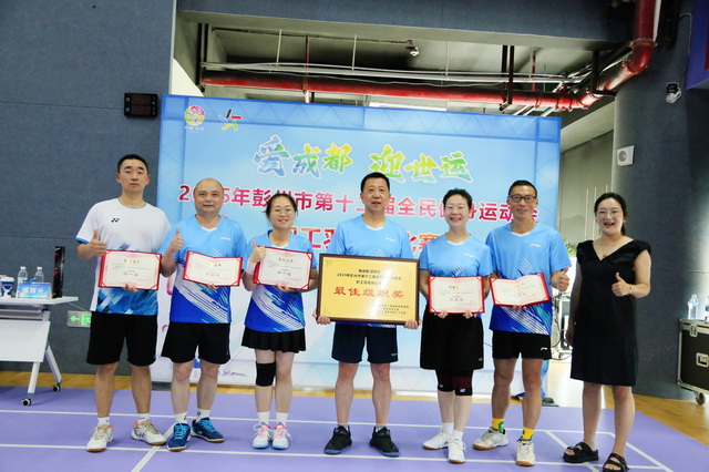 2025年7月27日至28日,由彭州市举办的“爱成都·迎世运”第十二届全民健身运动会职工羽毛球赛在泓森羽毛球俱乐部激情开赛。人民渠第一管理处应邀组队参赛,并在激烈角逐中脱颖而出,斩获混合双打第一名、第五名及男子双打第四名的优异成绩。 更为可喜的是,队伍展现的优良风貌与竞技水平,赢得赛事组委会的高度认可,被授予“最佳组织奖”荣誉称号!