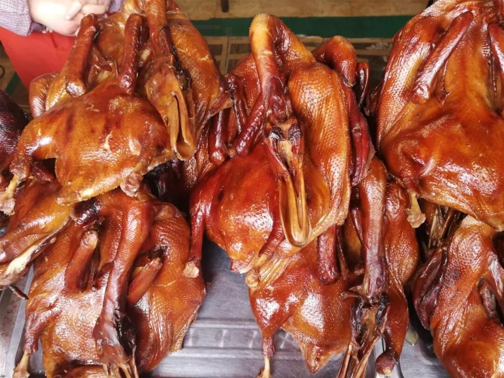 在彭州,军屯锅盔是必尝的美味,其历史可追溯到三国时期。刚出锅的锅盔色泽金黄,层多酥脆,入口化渣。九尺板鸭则是作为明清时期传承至今的彭州非遗美食,经“腌、晾、熏、烤”,其表皮呈深褐色,肉质则为枣红色,尝起来咸中带甜、筋道耐嚼。而在彭州九尺镇,鹅肠火锅也是一绝。九尺鹅肠火锅因鹅肠的鲜、脆、嫩引得食客垂涎。