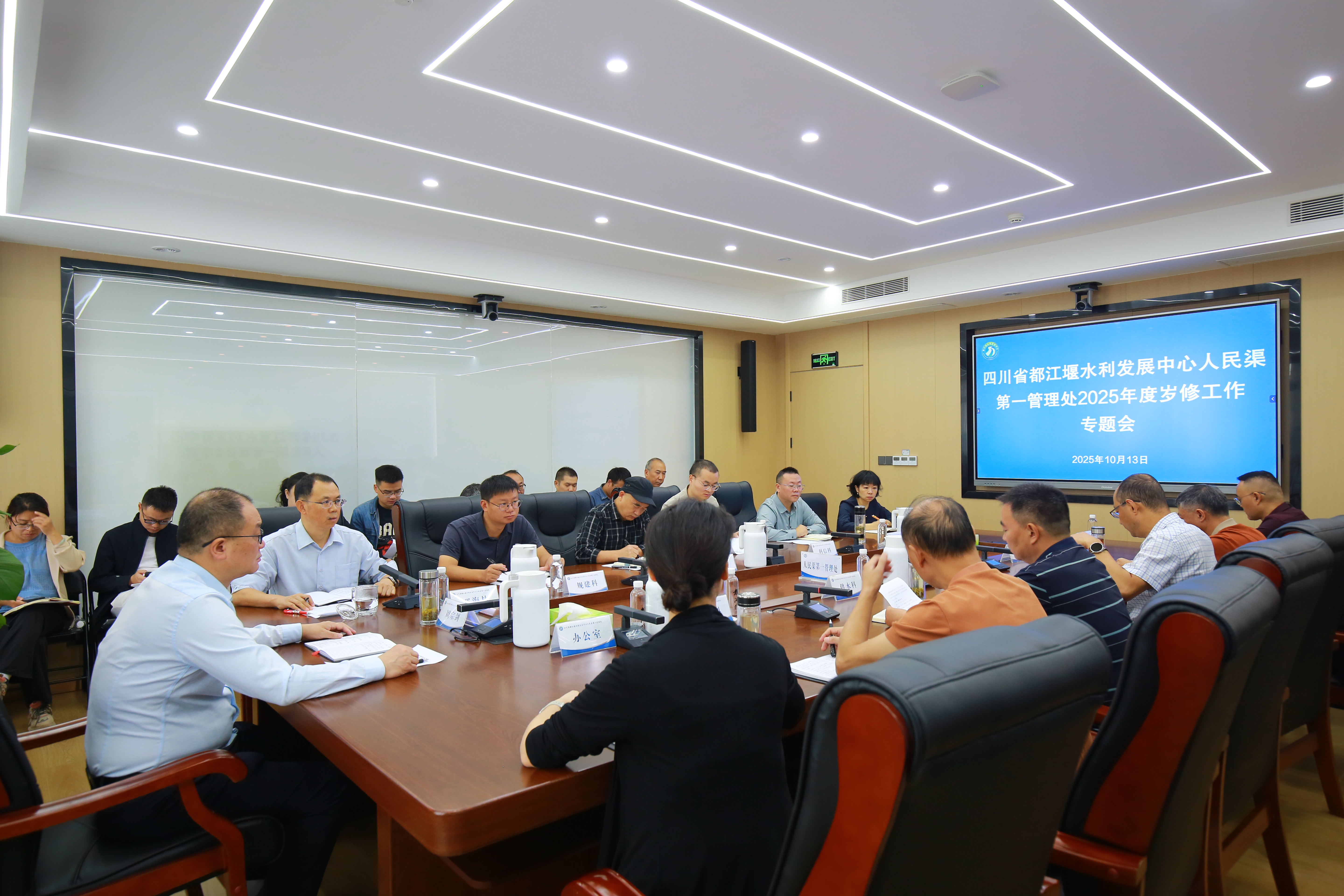 为保障2025年度岁修工作顺利高效推进,10月13日,人民渠第一管理处在指挥分中心二楼会商室组织召开2025年度岁修工作专题会。会议由处党委委员、副处长邓海林主持,处党委书记、处长周宗剑出席会议并讲话,相关科室、管理站负责人及项目参建单位代表参会。