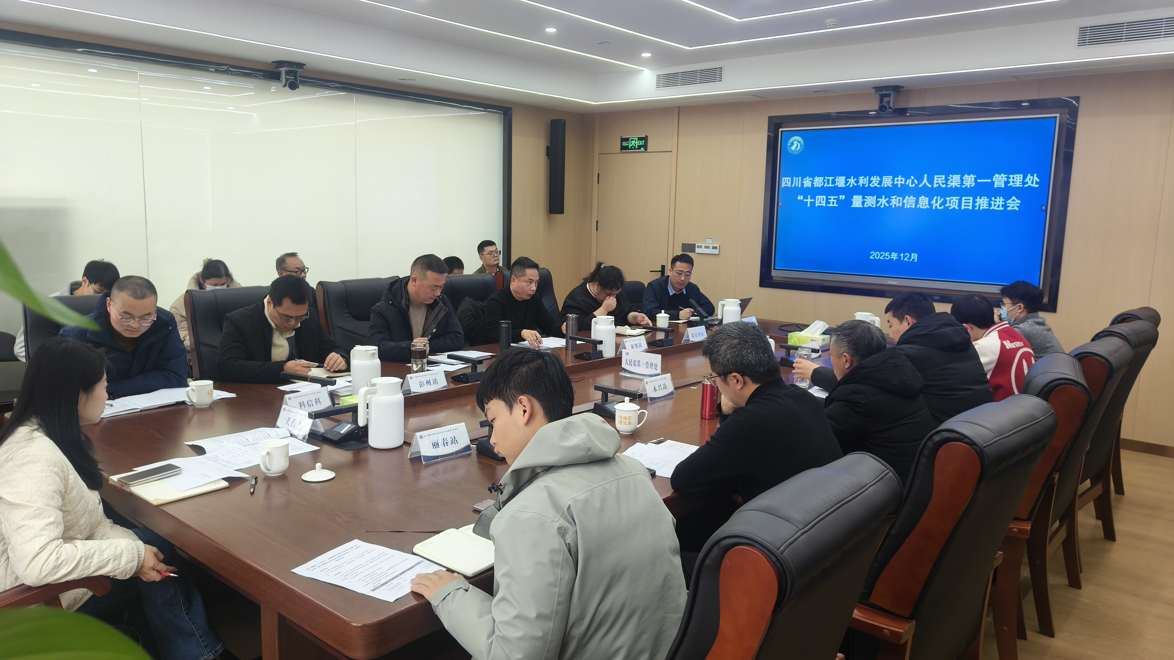 为扎实推进都江堰灌区“十四五”续建配套与现代化改造,2025年12月15日,人民渠第一管理处在指挥分中心二楼会商室召开“十四五”量测水及信息化项目推进会。处党委委员、副处长关蕴杰出席会议并讲话,相关科室、各基层管理站负责人及设计、监理、施工单位负责人参加会议。