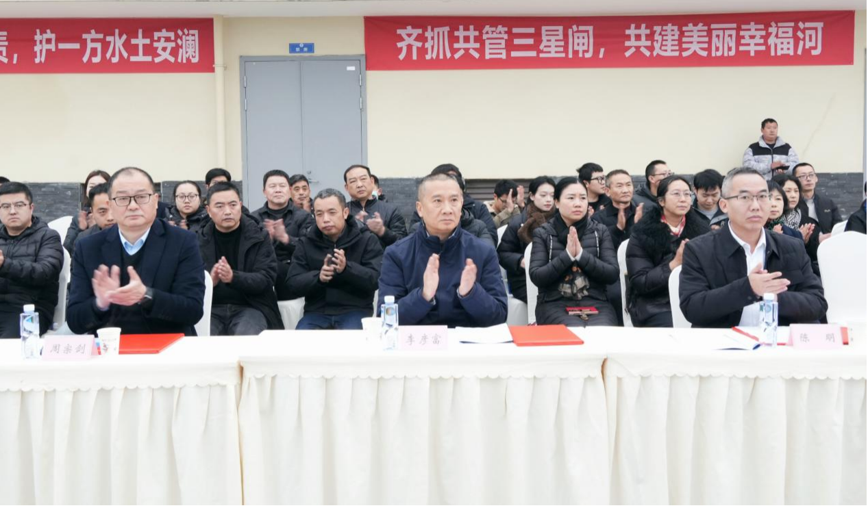 四川省都江堰水利发展中心人民渠第一管理处党委书记、处长周宗剑作为运行管理单位代表发言。他强调,三星湖拦河闸及取水闸枢纽工程是德阳高新区水网体系的关键节点,也是服务地方“水安全、水生态、水经济”的民生工程。人民渠第一管理处将切实承担起管理责任,以“安全为基”守牢运行底线,以“民生为根”发挥工程效益,以“长效为本”夯实管理基础,确保工程长久稳定运行,让三星湖枢纽成为“防洪保安全、灌溉润民心、供水促发展、生态惠长远”的民生工程,为德阳高新区高质量发展贡献水利力量。