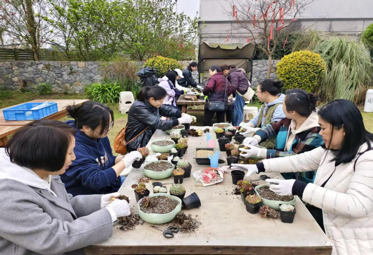 花艺学习添雅趣,座谈交流话情谊。插花花艺学习环节,通过专业老师讲解花卉搭配、造型设计等技巧,退休女职工们动手实践,制作出各具特色的花艺作品。花艺学习后,座谈会温馨开启,大家围绕过往工作经历、退休生活感悟、水利事业变迁等话题畅所欲言,现场欢声笑语不断,浓厚的情谊在交流中愈发深厚。
