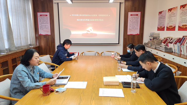 《项目建设管理廉洁承诺书》签订仪式 本次专题学习,对干部职工认清当前意识形态工作形势、结合本职工作提升意识形态工作水平起到了有力的推动作用。大家纷纷表示:一是要提高政治站位,强化思想认识。坚持用习近平新时代中国特色社会主义思想凝心铸魂,深刻领悟“两个确立”的决定性意义,增强“四个意识”、坚定“四个自信”、做到“两个维护”。二是要深刻认识网络安全、意识形态等工作面临的新形势新任务,扎实做好网络意识形态安全工作。三是要严格落实意识形态工作责任制,坚持守土有责、守土尽责,坚定不移做服务保障灌区水利高质量发展的推动者和护航者。 (供稿:科信科党支部)