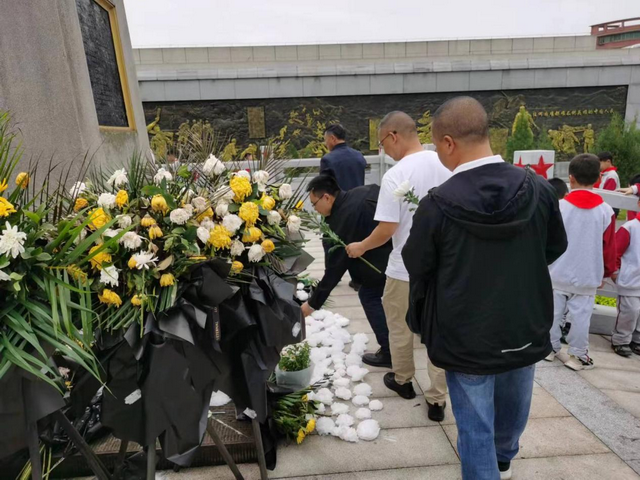 党员同志们在烈士纪念塔前整齐列队,大家心怀敬仰、神情肃穆,向为中华人民解放事业和共和国建设事业英勇献身的烈士默哀、鞠躬致敬,并绕行烈士纪念塔依次献花。