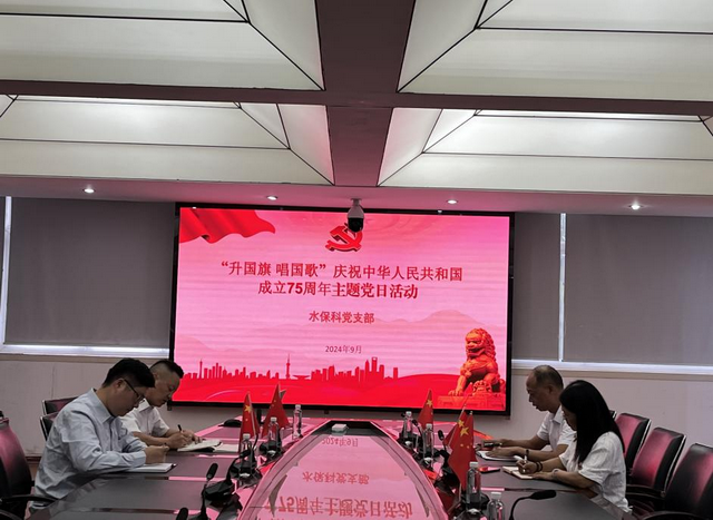 为庆祝中华人民共和国成立75周年,弘扬爱国主义精神,激发党员干部的爱国热情,进一步增强党员干部的责任感和使命感,9月24日,水利保护科党支部开展“升国旗 唱国歌”主题党日活动。活动由党支部副书记王兴强主持,全体党员参加。