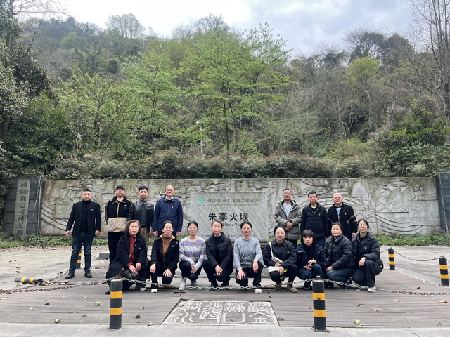 下午来到世界灌溉工程遗产“朱李火堰”遗址公园,全体党员深入了解李冰通过“导洛通山”修建朱李火堰水利工程的历史。