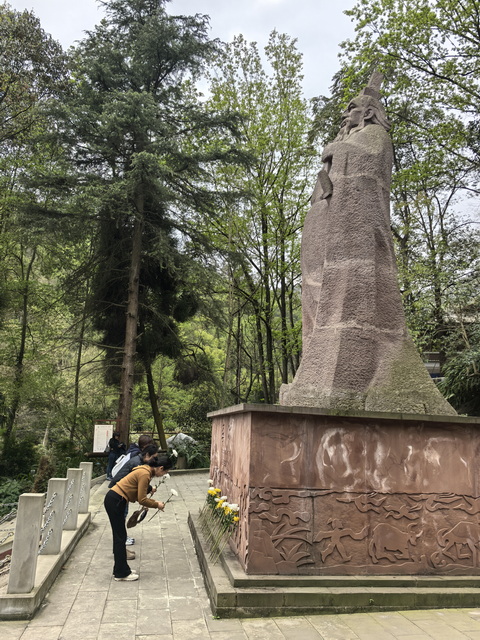 在李冰陵园,全体党员向李冰雕像敬献鲜花,共同缅怀治水先贤,并沿着999级台阶拾阶而上,来到李冰墓前追思,表达尊崇和缅怀之情。