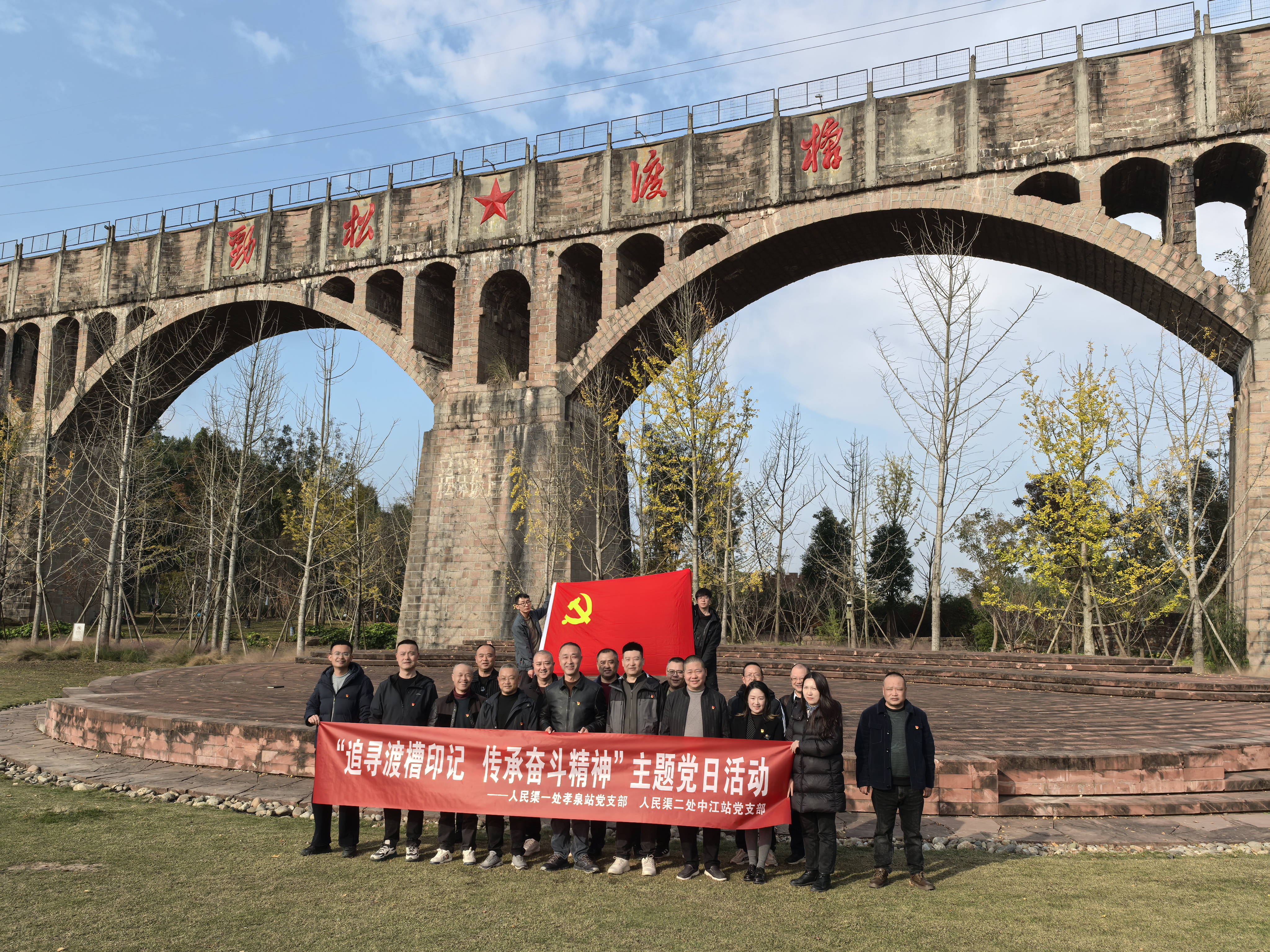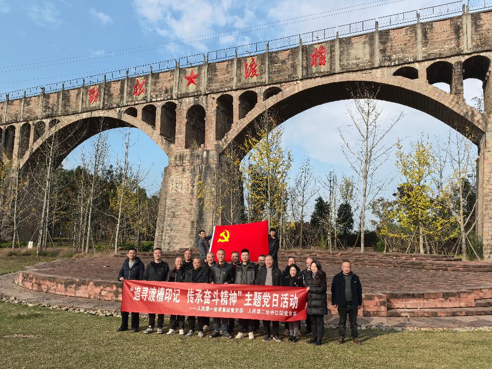 为深入学习贯彻党的二十届四中全会精神,推动党建工作与业务工作深度融合,促进灌区资源共享与优势互补,11月26日,人民渠第一管理处孝泉站党支部与人民渠第二管理处中江站党支部联合开展了“追寻渡槽印记,传承奋斗精神”的主题党日活动。全体党员干部共同前往中江,追寻水利印记,感悟治水精神。